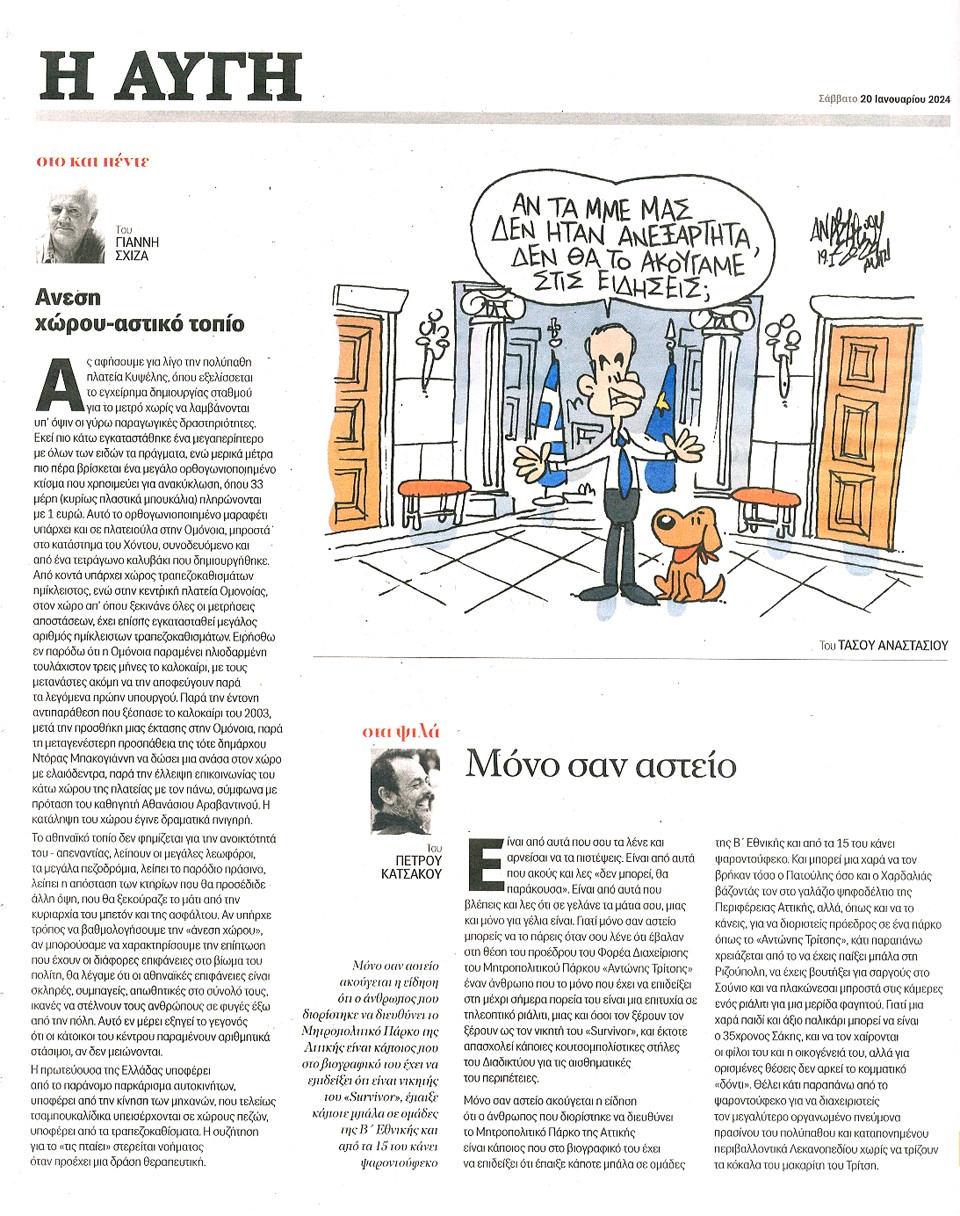 Η ΑΥΓΗ - 20 Ιανουαρίου 2024
