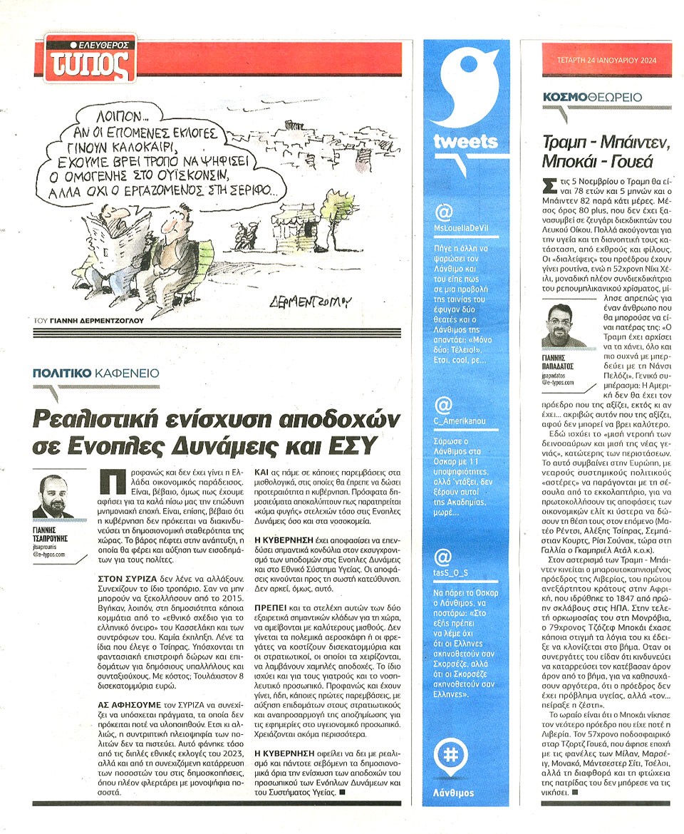 ΕΛΕΥΘΕΡΟΣ ΤΥΠΟΣ - 24 Ιανουαρίου 2024