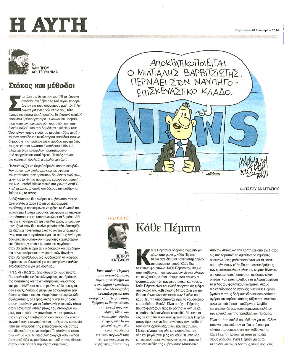 Η ΑΥΓΗ - 26 Ιανουαρίου 2024