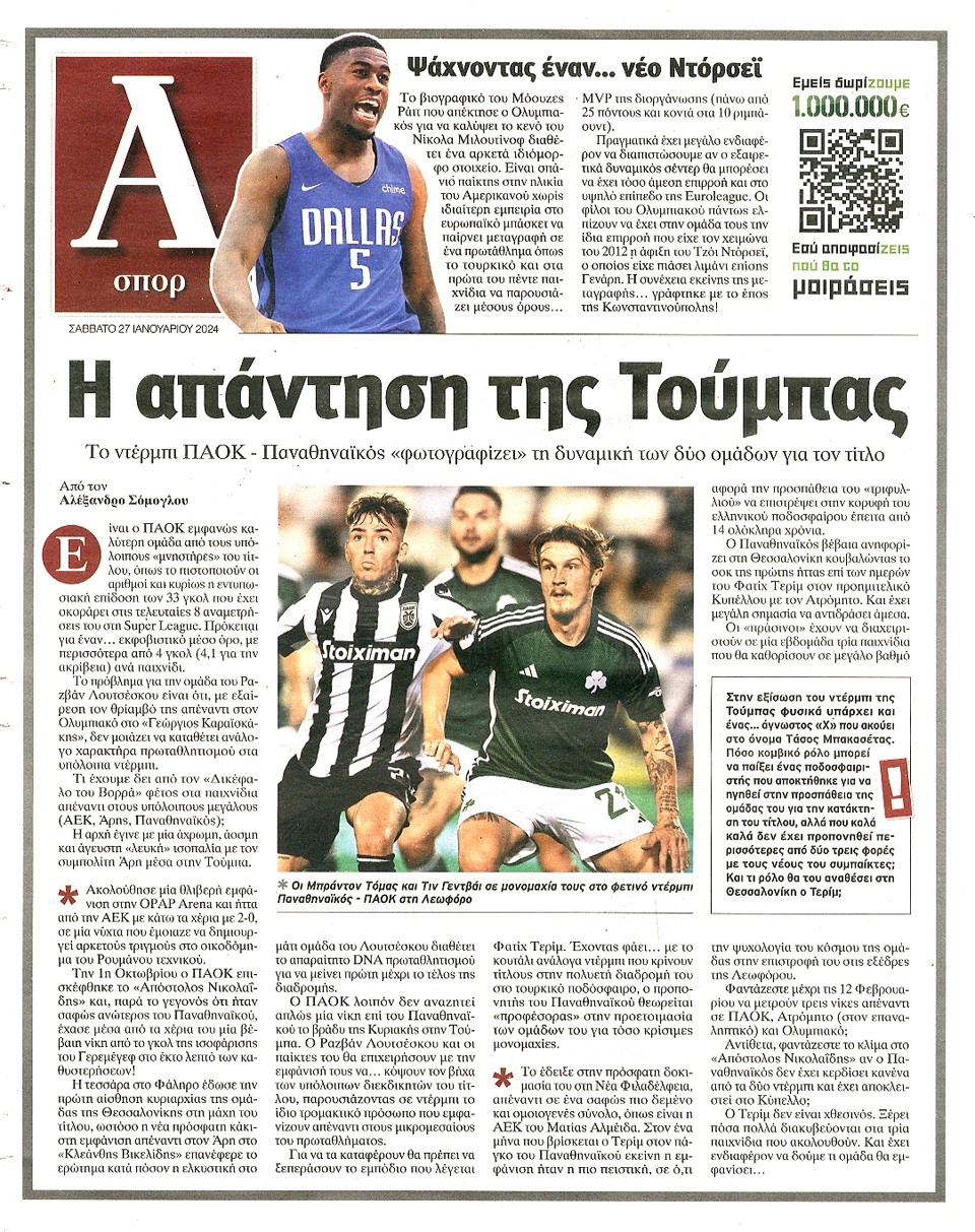 ΑΠΟΓΕΥΜΑΤΙΝΗ - 27 Ιανουαρίου 2024