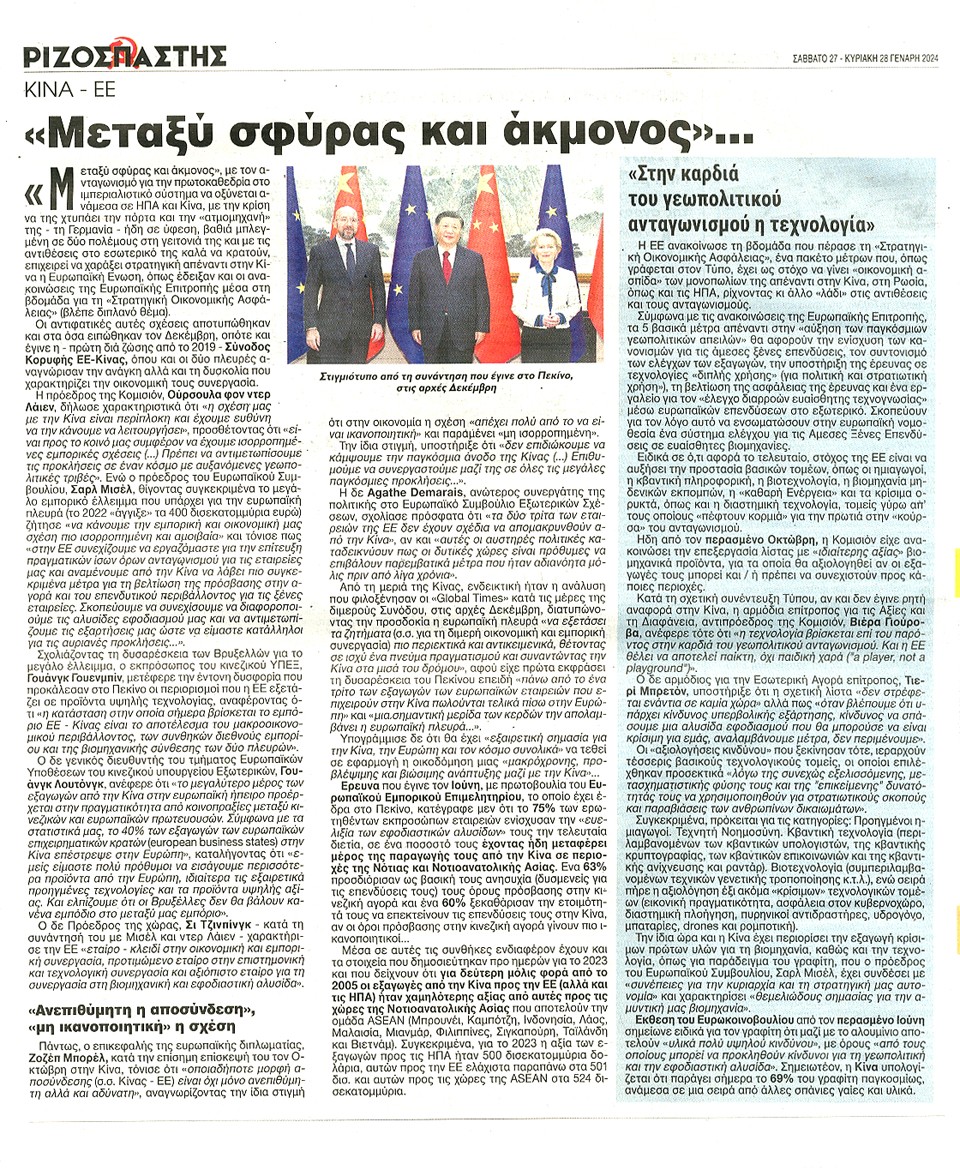 ΡΙΖΟΣΠΑΣΤΗΣ ΤΗΣ ΚΥΡΙΑΚΗΣ - 27 Ιανουαρίου 2024