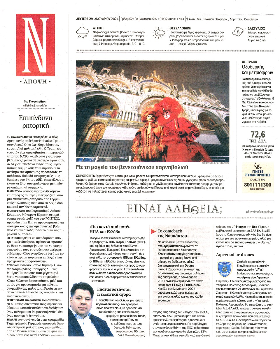ΝΑΥΤΕΜΠΟΡΙΚΗ - 29 Ιανουαρίου 2024