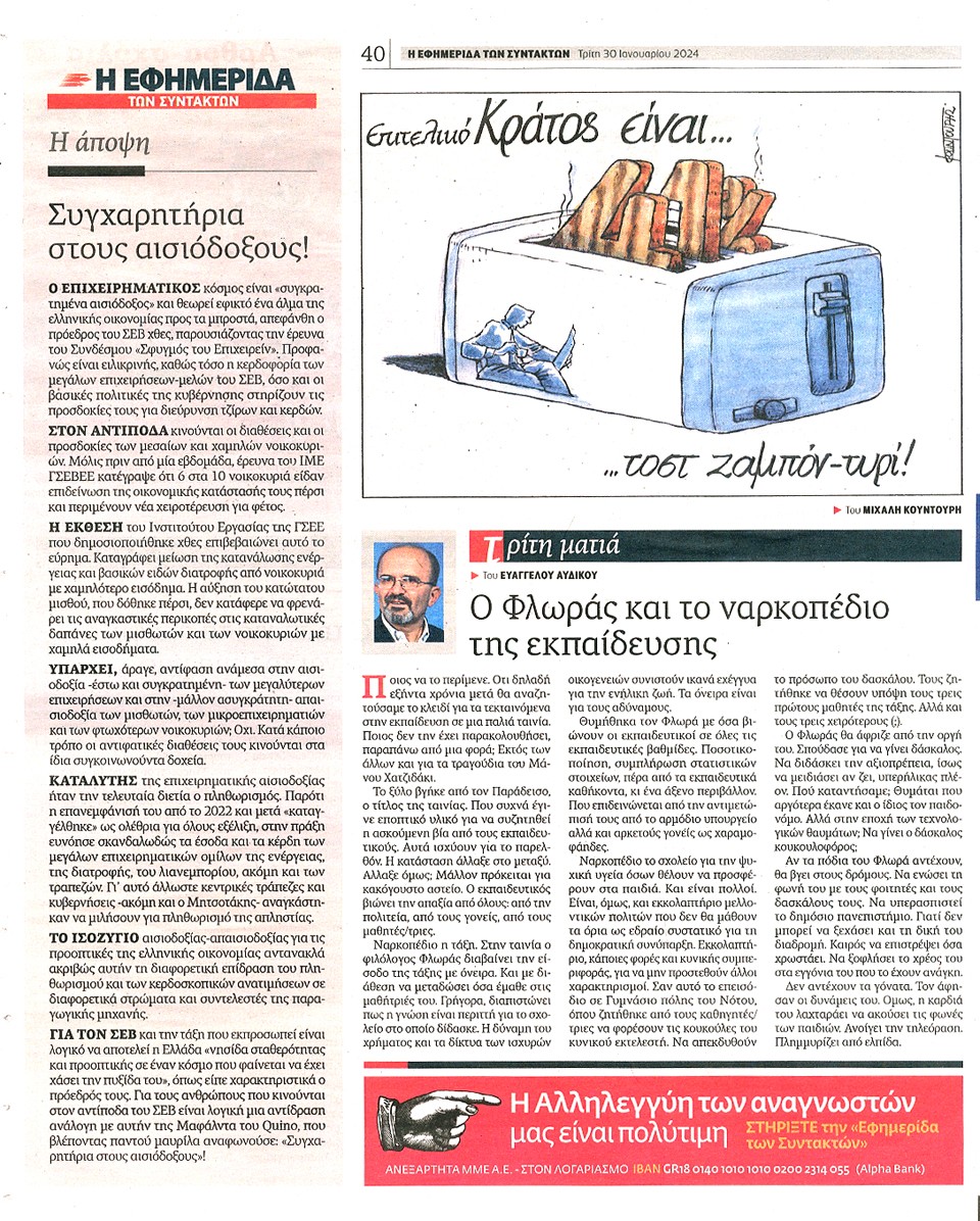 Η ΕΦΗΜΕΡΙΔΑ ΤΩΝ ΣΥΝΤΑΚΤΩΝ - 30 Ιανουαρίου 2024