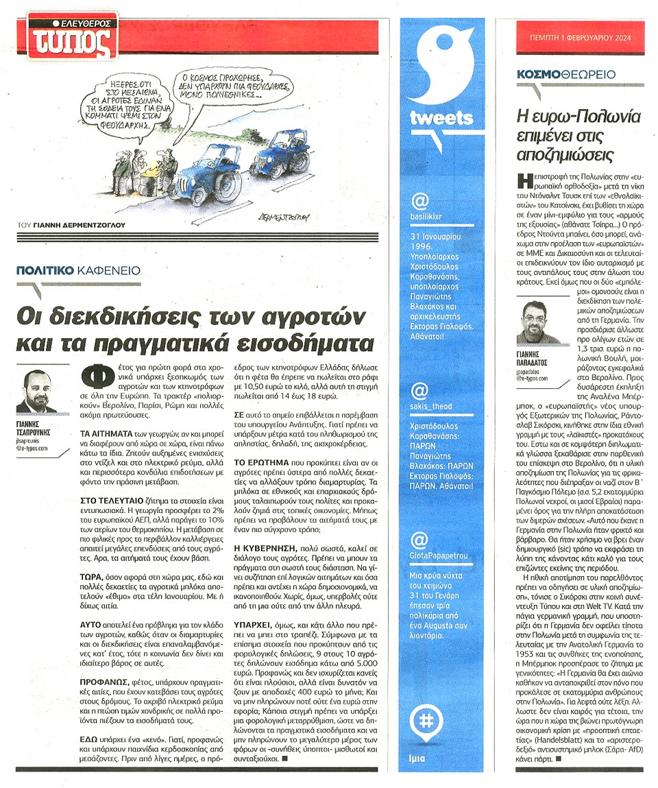 ΕΛΕΥΘΕΡΟΣ ΤΥΠΟΣ - 01 Φεβρουαρίου 2024