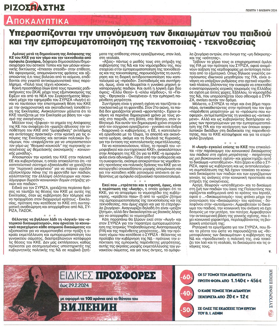 ΡΙΖΟΣΠΑΣΤΗΣ - 01 Φεβρουαρίου 2024