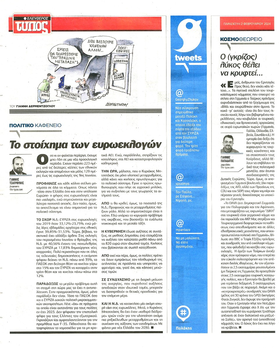 ΕΛΕΥΘΕΡΟΣ ΤΥΠΟΣ - 02 Φεβρουαρίου 2024