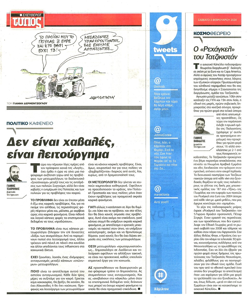 ΕΛΕΥΘΕΡΟΣ ΤΥΠΟΣ - 03 Φεβρουαρίου 2024