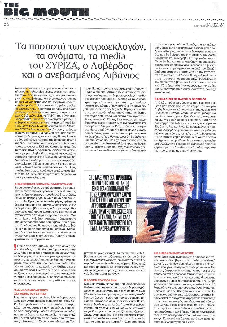 ΑΠΟΓΕΥΜΑΤΙΝΗ ΤΗΣ ΚΥΡΙΑΚΗΣ - 04 Φεβρουαρίου 2024