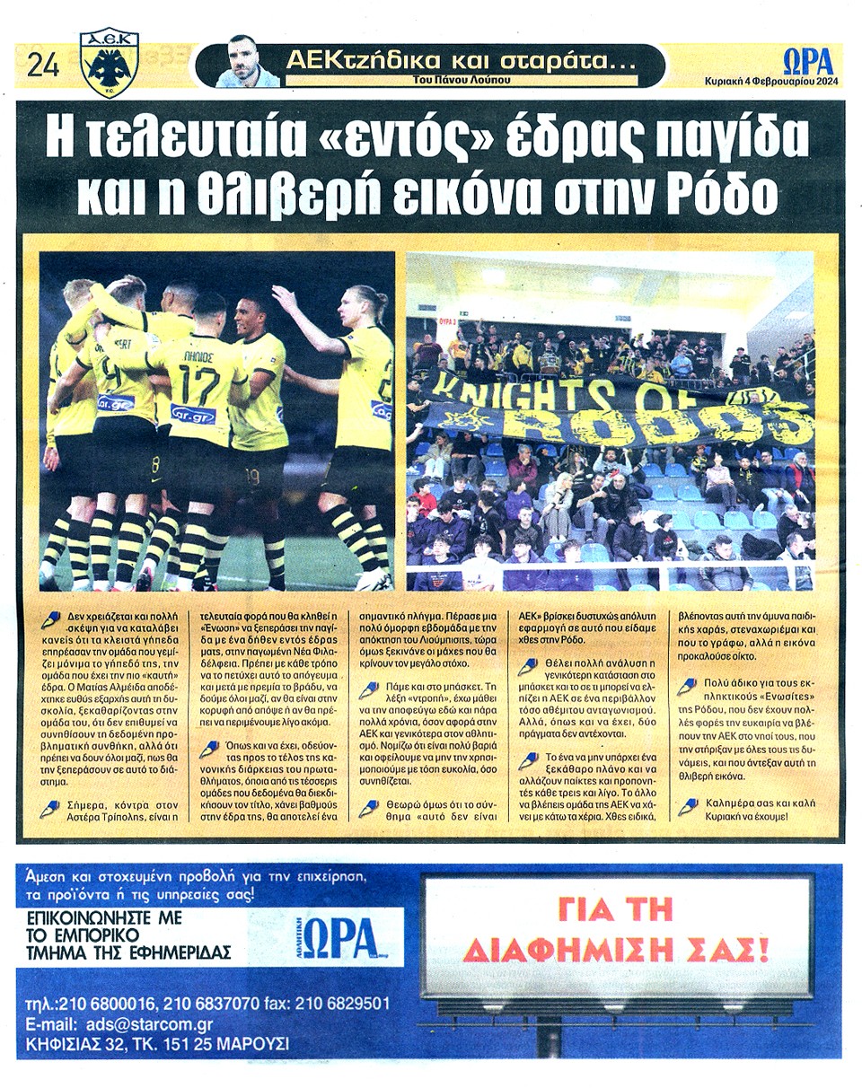 ΑΘΛΗΤΙΚΗ ΩΡΑ ΤΩΝ ΣΠΟΡ - 04 Φεβρουαρίου 2024
