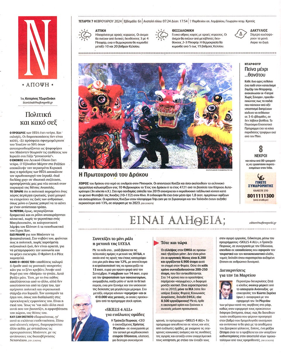 ΝΑΥΤΕΜΠΟΡΙΚΗ - 07 Φεβρουαρίου 2024