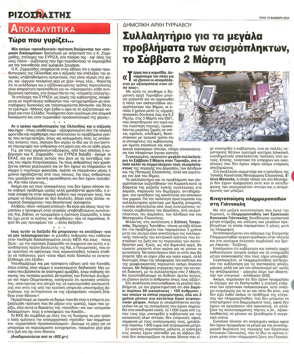 ΡΙΖΟΣΠΑΣΤΗΣ - 13 Φεβρουαρίου 2024