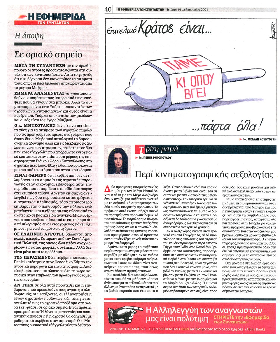 Η ΕΦΗΜΕΡΙΔΑ ΤΩΝ ΣΥΝΤΑΚΤΩΝ - 14 Φεβρουαρίου 2024