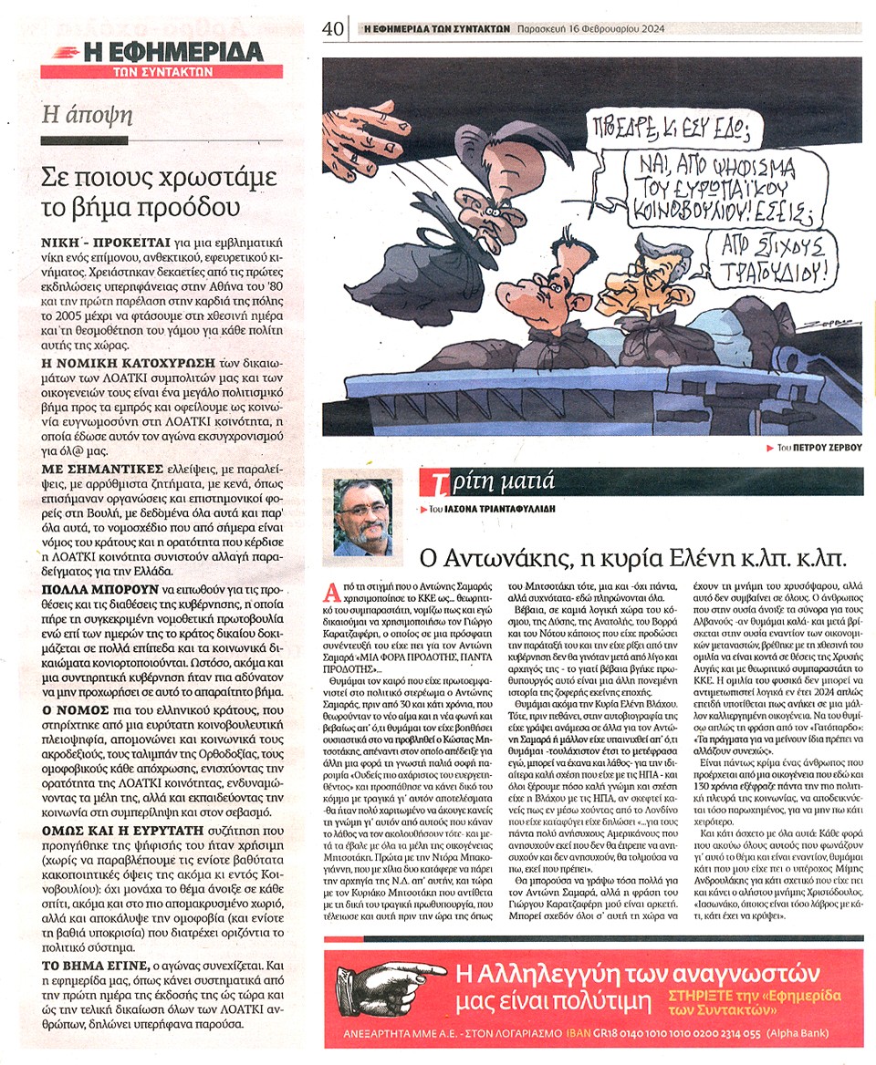 Η ΕΦΗΜΕΡΙΔΑ ΤΩΝ ΣΥΝΤΑΚΤΩΝ - 16 Φεβρουαρίου 2024