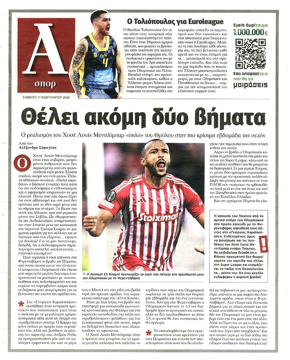 ΑΠΟΓΕΥΜΑΤΙΝΗ - 17 Φεβρουαρίου 2024