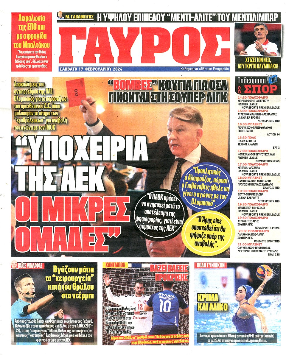 ΠΡΩΤΑΘΛΗΤΗΣ - 17 Φεβρουαρίου 2024