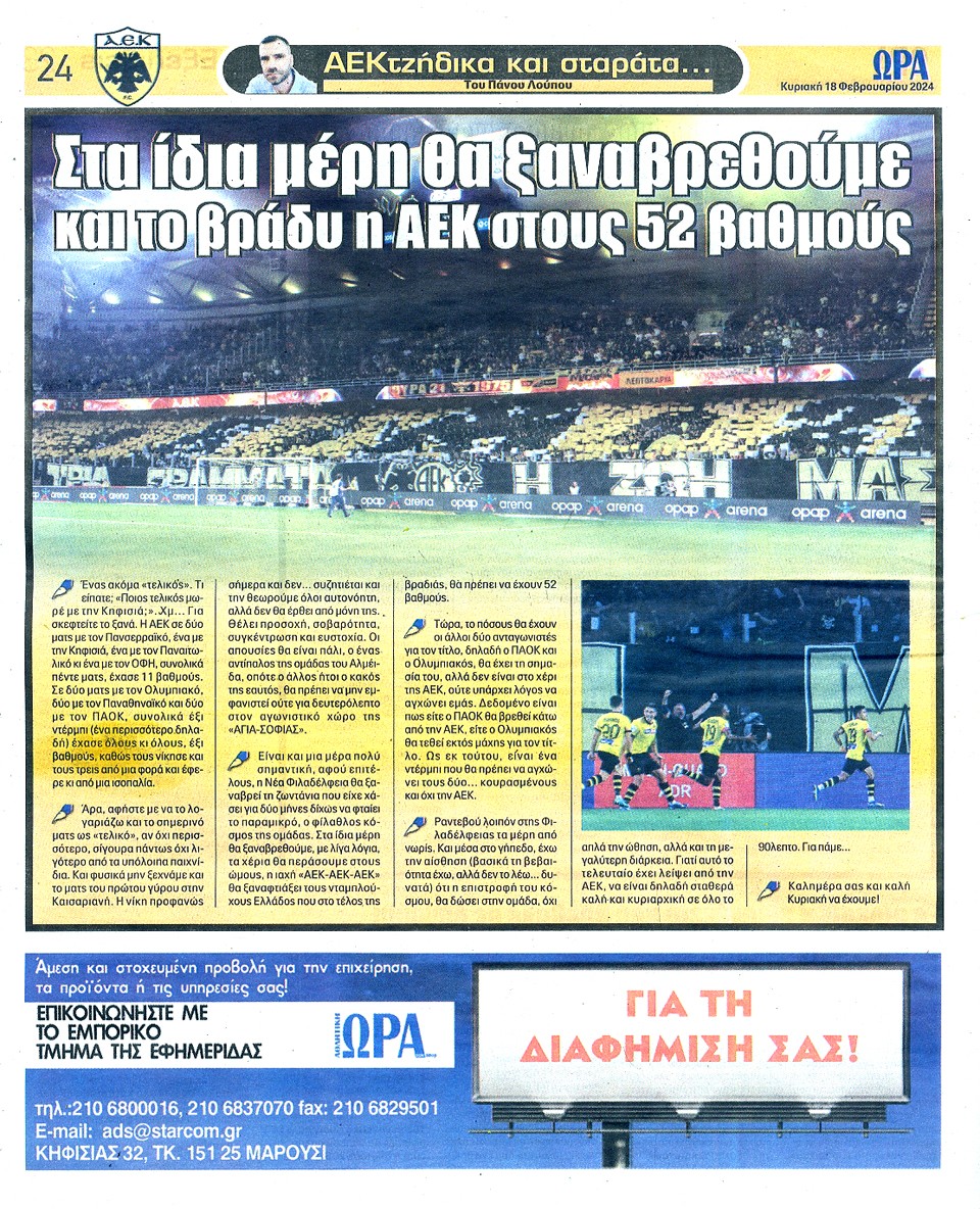 ΑΘΛΗΤΙΚΗ ΩΡΑ ΤΩΝ ΣΠΟΡ - 18 Φεβρουαρίου 2024