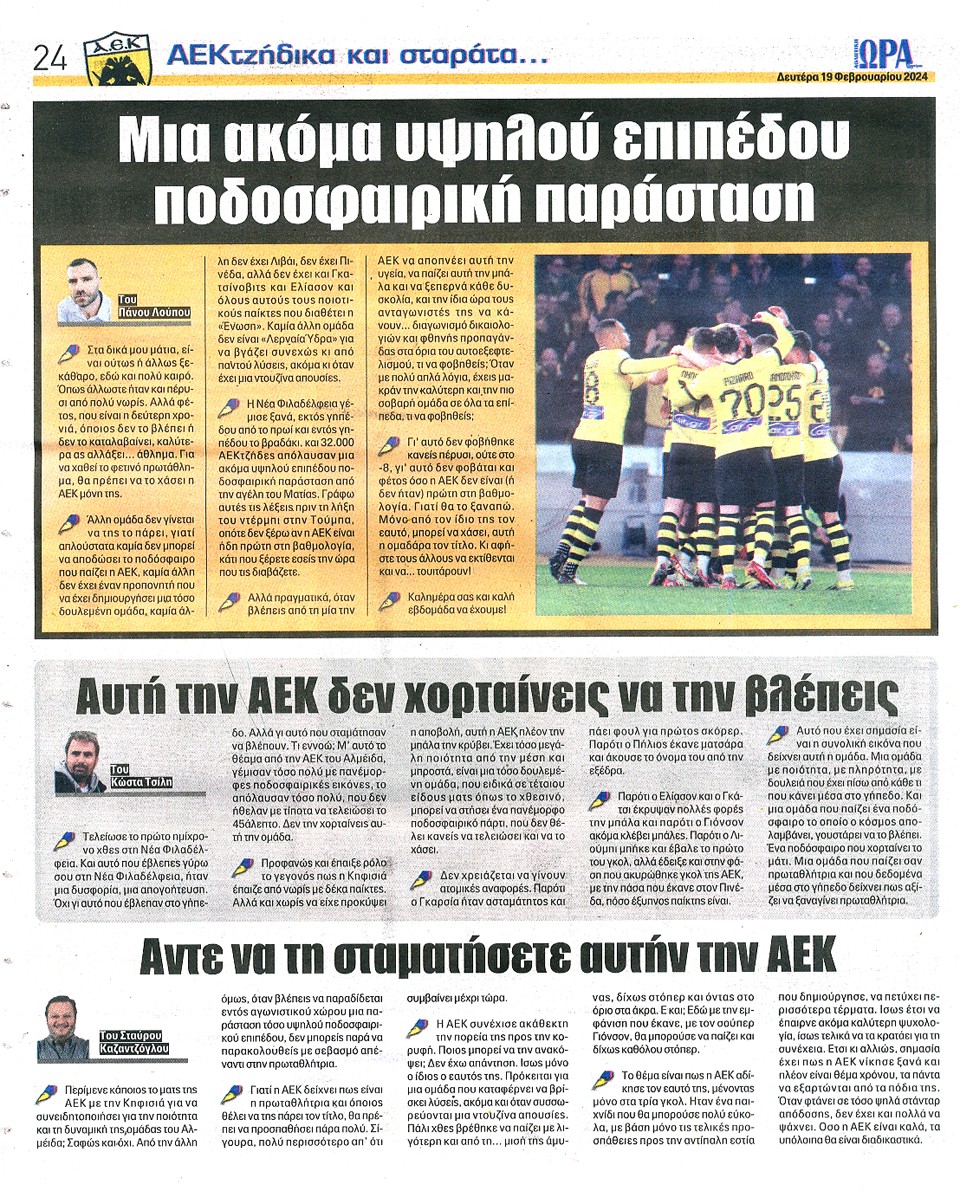 ΑΘΛΗΤΙΚΗ ΩΡΑ ΤΩΝ ΣΠΟΡ - 19 Φεβρουαρίου 2024