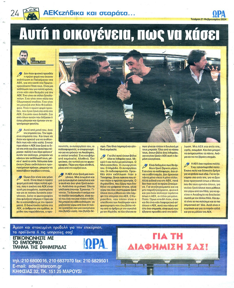 ΑΘΛΗΤΙΚΗ ΩΡΑ ΤΩΝ ΣΠΟΡ - 21 Φεβρουαρίου 2024