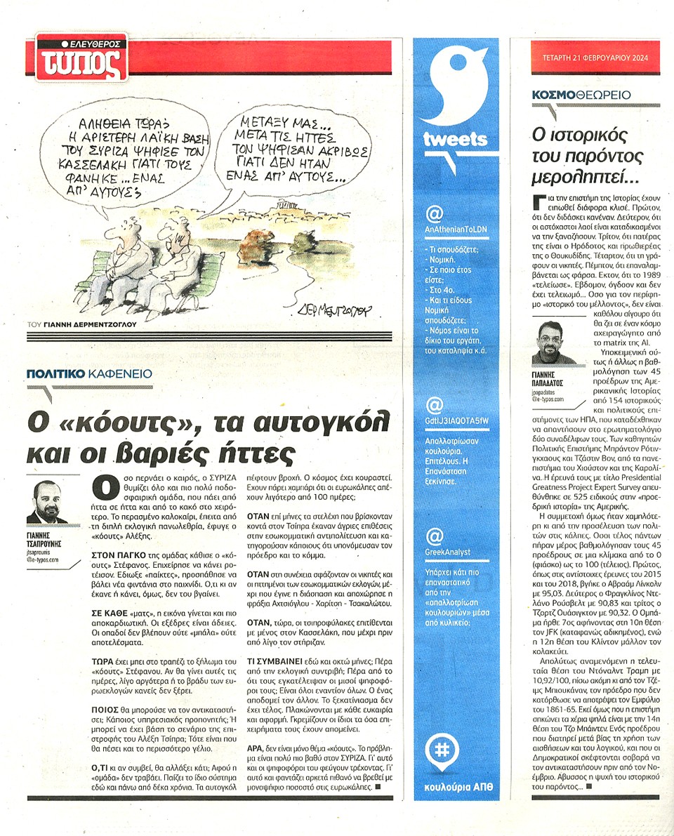 ΕΛΕΥΘΕΡΟΣ ΤΥΠΟΣ - 21 Φεβρουαρίου 2024