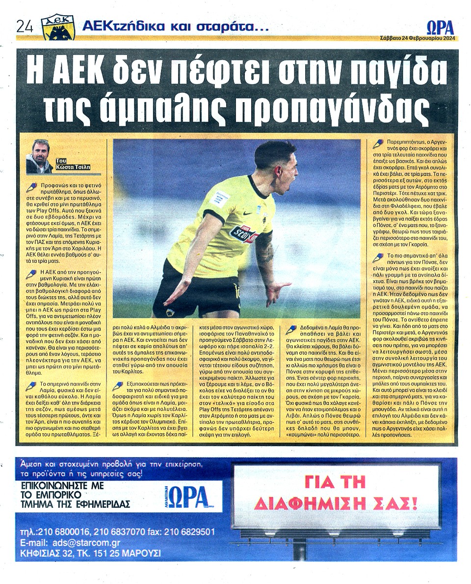ΑΘΛΗΤΙΚΗ ΩΡΑ ΤΩΝ ΣΠΟΡ - 24 Φεβρουαρίου 2024