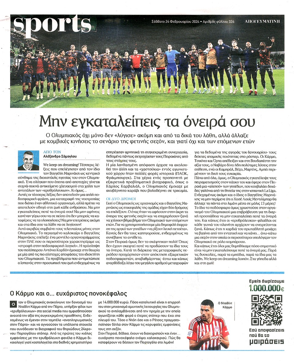 ΑΠΟΓΕΥΜΑΤΙΝΗ - 24 Φεβρουαρίου 2024