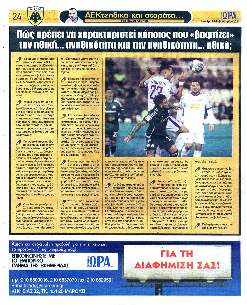 ΑΘΛΗΤΙΚΗ ΩΡΑ ΤΩΝ ΣΠΟΡ - 26 Φεβρουαρίου 2024