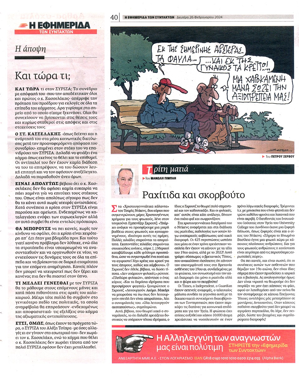 Η ΕΦΗΜΕΡΙΔΑ ΤΩΝ ΣΥΝΤΑΚΤΩΝ - 26 Φεβρουαρίου 2024