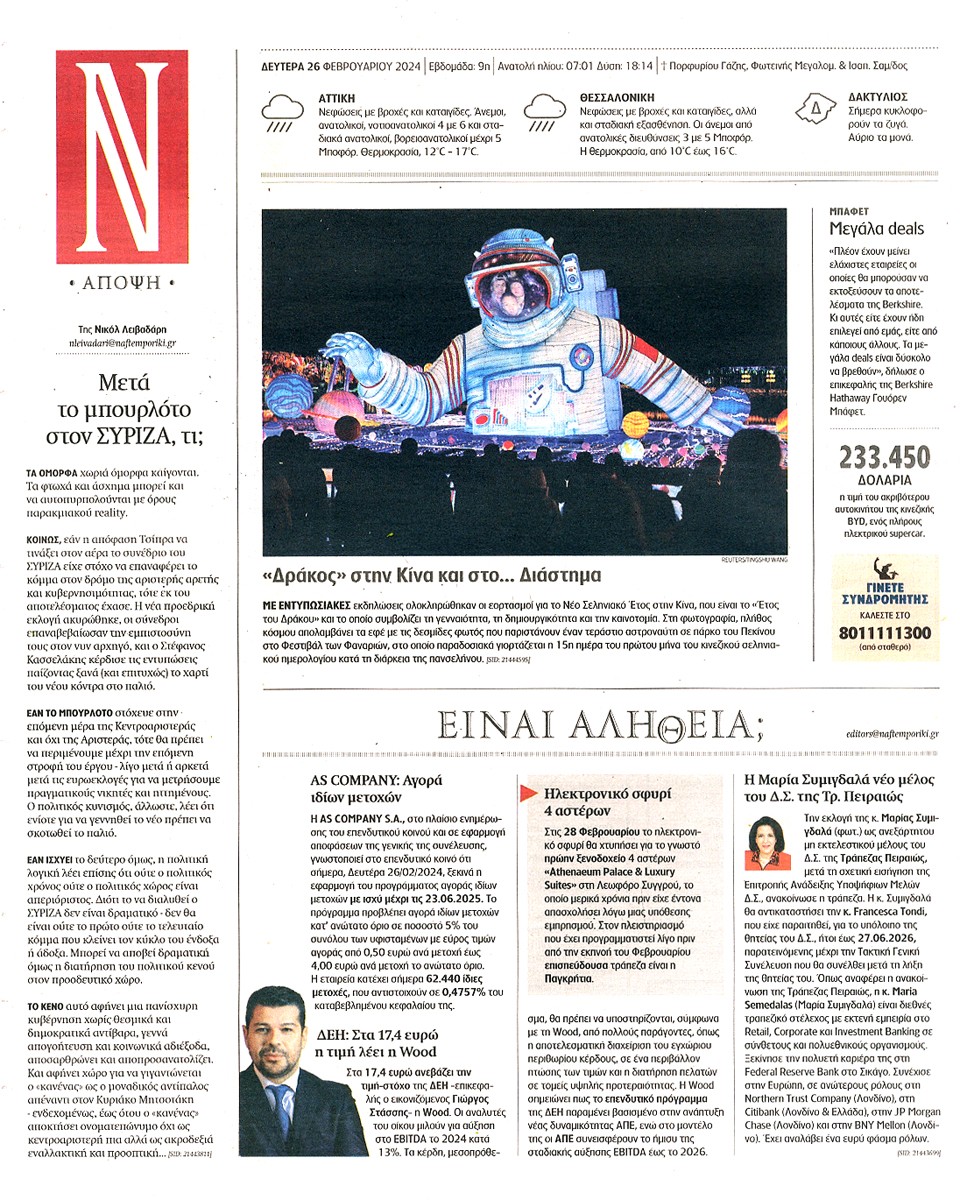 ΝΑΥΤΕΜΠΟΡΙΚΗ - 26 Φεβρουαρίου 2024
