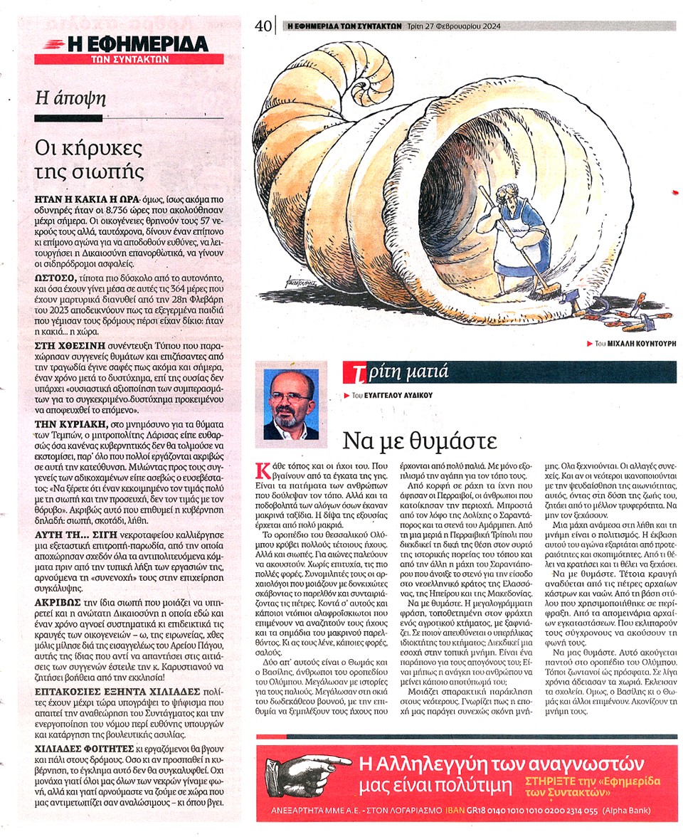 Η ΕΦΗΜΕΡΙΔΑ ΤΩΝ ΣΥΝΤΑΚΤΩΝ - 27 Φεβρουαρίου 2024