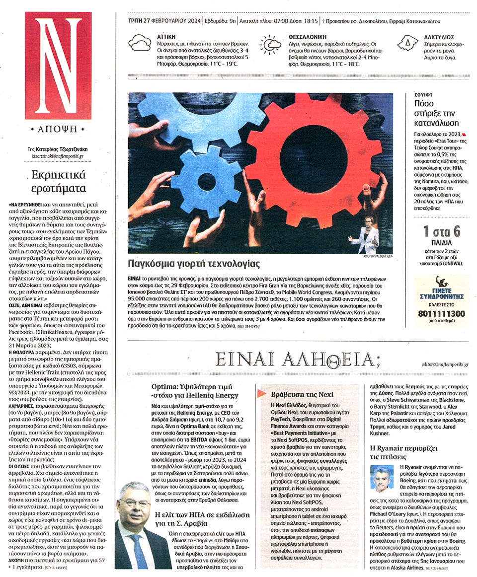 ΝΑΥΤΕΜΠΟΡΙΚΗ - 27 Φεβρουαρίου 2024