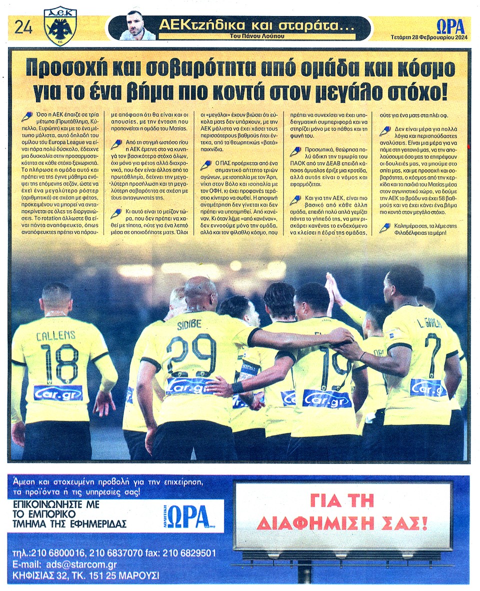 ΑΘΛΗΤΙΚΗ ΩΡΑ ΤΩΝ ΣΠΟΡ - 28 Φεβρουαρίου 2024
