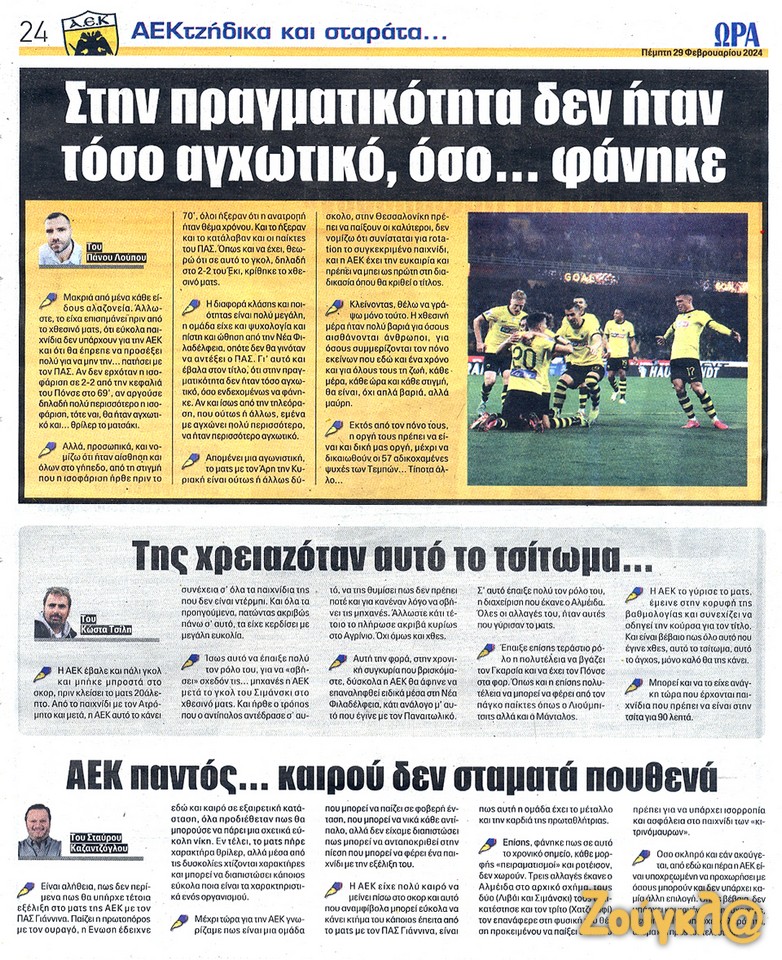 ΑΘΛΗΤΙΚΗ ΩΡΑ ΤΩΝ ΣΠΟΡ - 29 Φεβρουαρίου 2024
