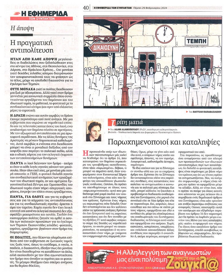 Η ΕΦΗΜΕΡΙΔΑ ΤΩΝ ΣΥΝΤΑΚΤΩΝ - 29 Φεβρουαρίου 2024