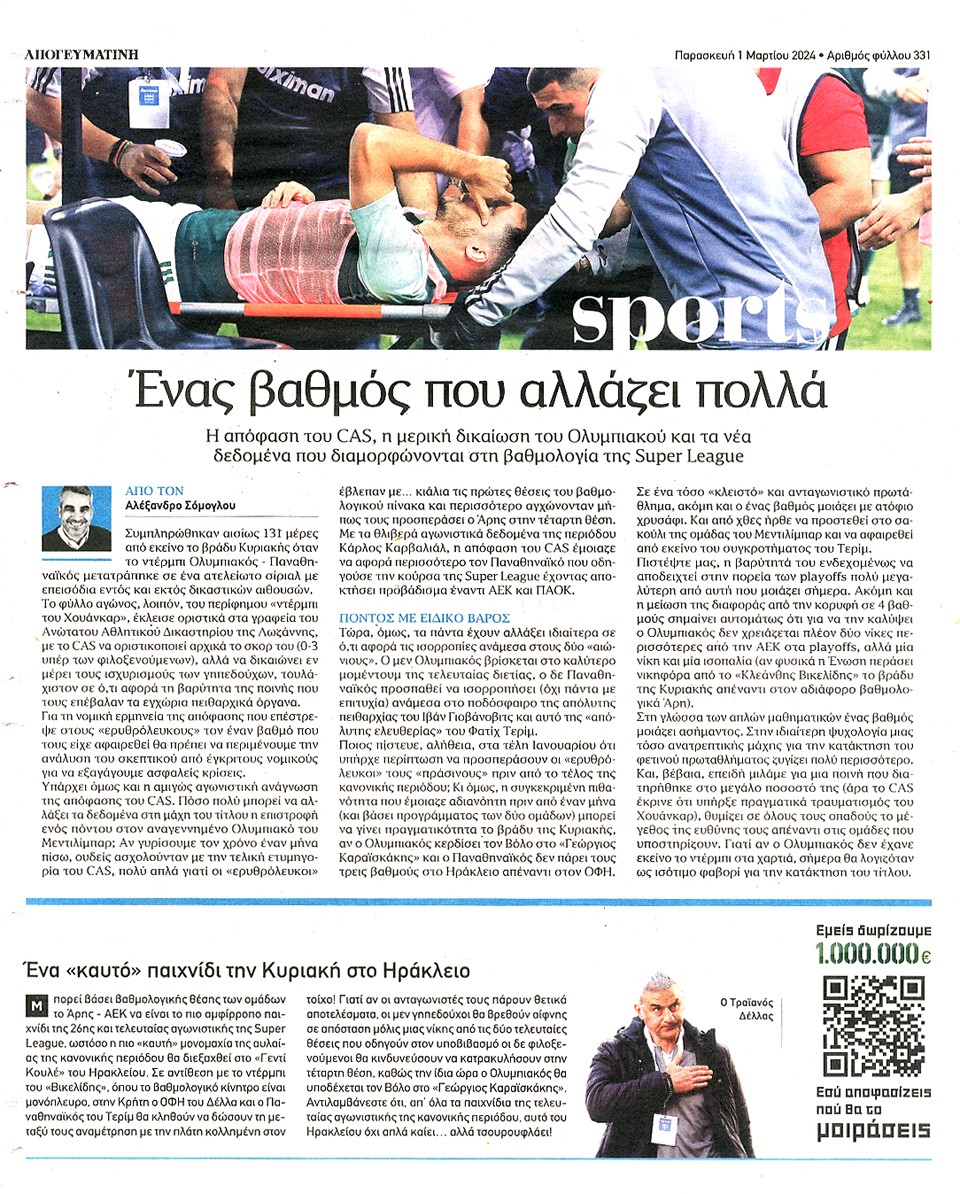 ΑΠΟΓΕΥΜΑΤΙΝΗ - 01 Μαρτίου 2024