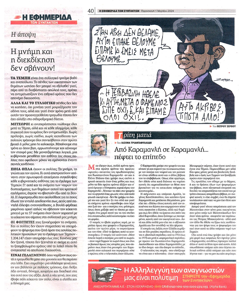 Η ΕΦΗΜΕΡΙΔΑ ΤΩΝ ΣΥΝΤΑΚΤΩΝ - 01 Μαρτίου 2024