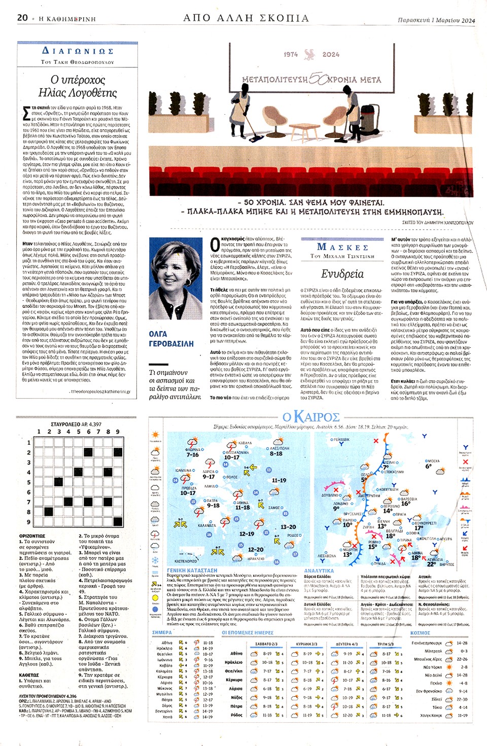 ΚΑΘΗΜΕΡΙΝΗ - 01 Μαρτίου 2024