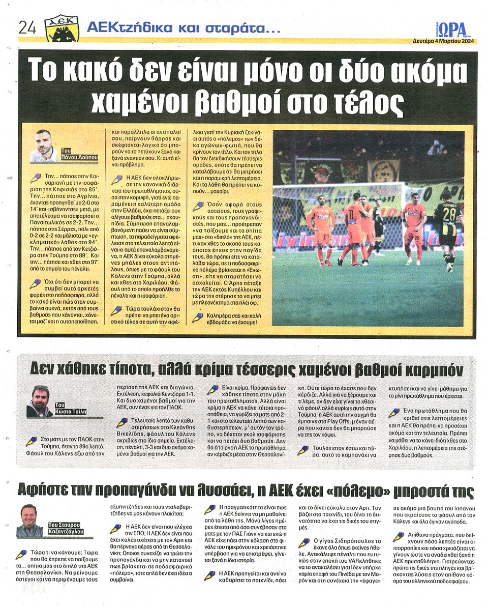 ΑΘΛΗΤΙΚΗ ΩΡΑ ΤΩΝ ΣΠΟΡ - 04 Μαρτίου 2024