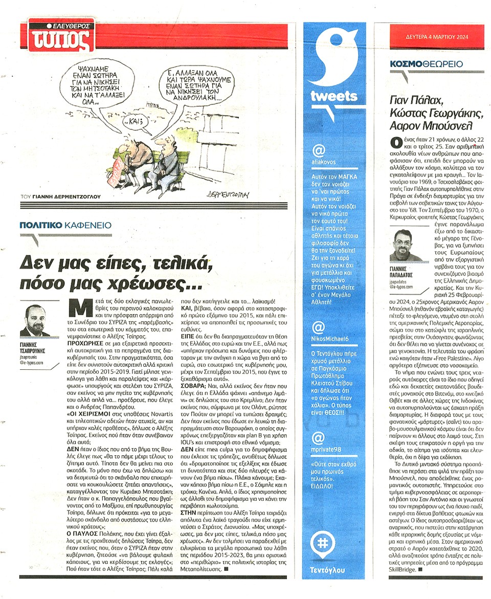 ΕΛΕΥΘΕΡΟΣ ΤΥΠΟΣ - 04 Μαρτίου 2024