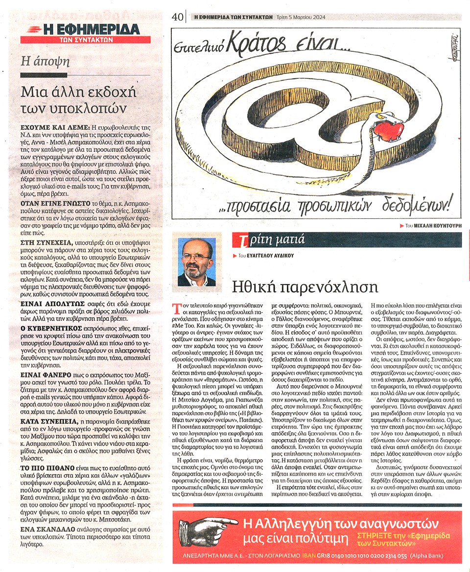 Η ΕΦΗΜΕΡΙΔΑ ΤΩΝ ΣΥΝΤΑΚΤΩΝ - 05 Μαρτίου 2024