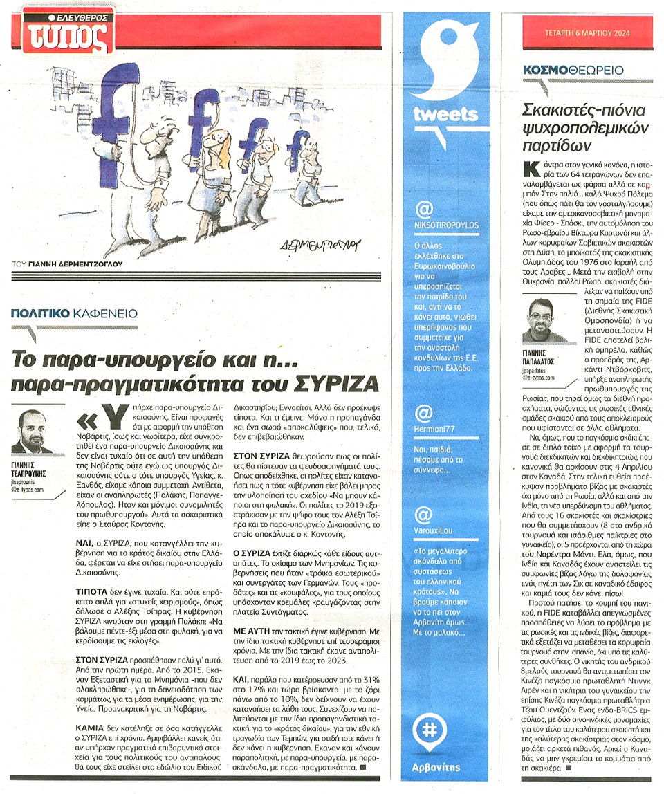 ΕΛΕΥΘΕΡΟΣ ΤΥΠΟΣ - 06 Μαρτίου 2024