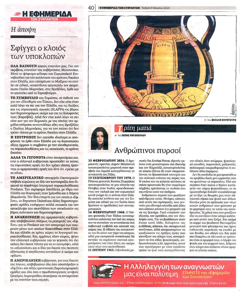 Η ΕΦΗΜΕΡΙΔΑ ΤΩΝ ΣΥΝΤΑΚΤΩΝ - 06 Μαρτίου 2024