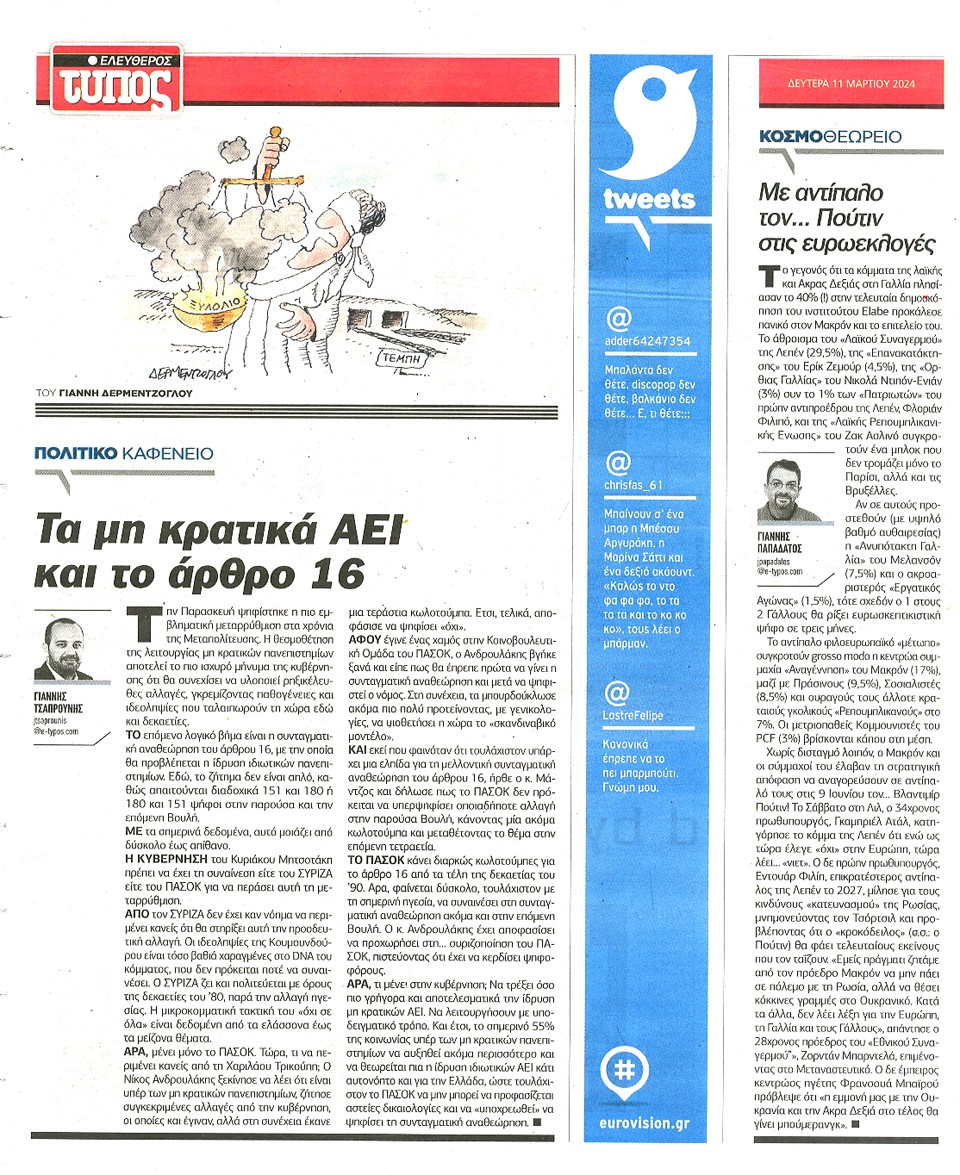 ΕΛΕΥΘΕΡΟΣ ΤΥΠΟΣ - 11 Μαρτίου 2024