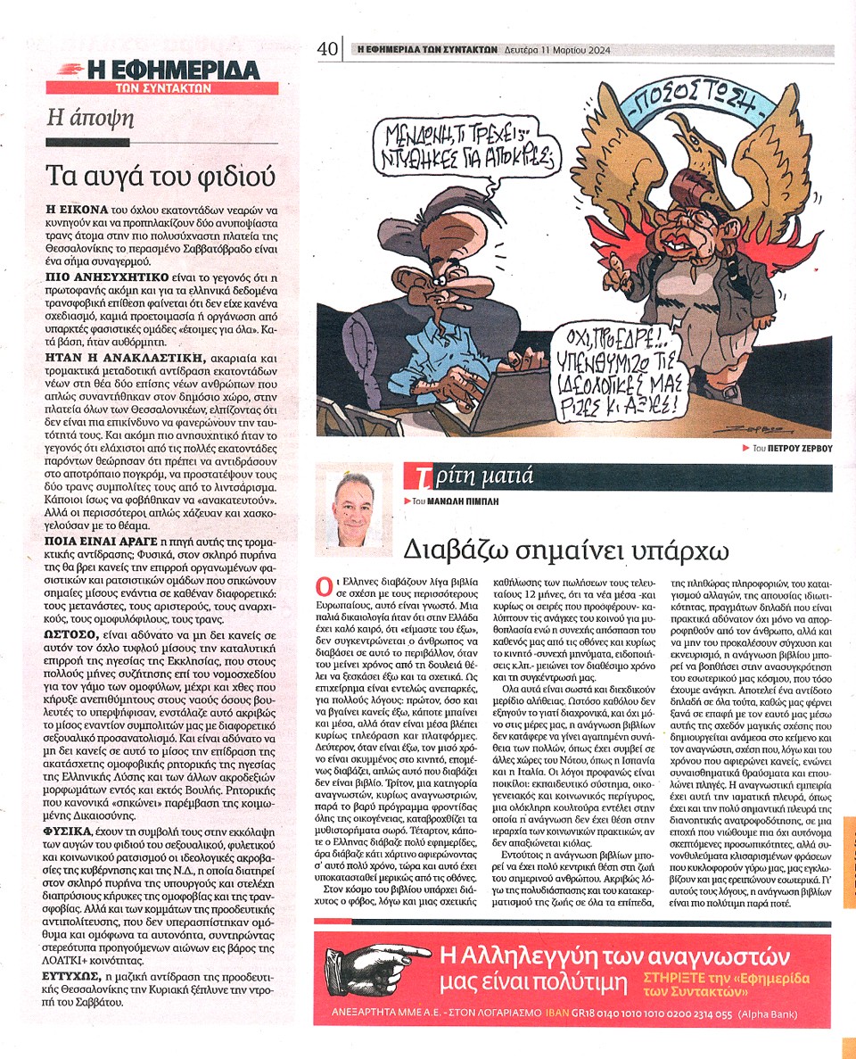 Η ΕΦΗΜΕΡΙΔΑ ΤΩΝ ΣΥΝΤΑΚΤΩΝ - 11 Μαρτίου 2024