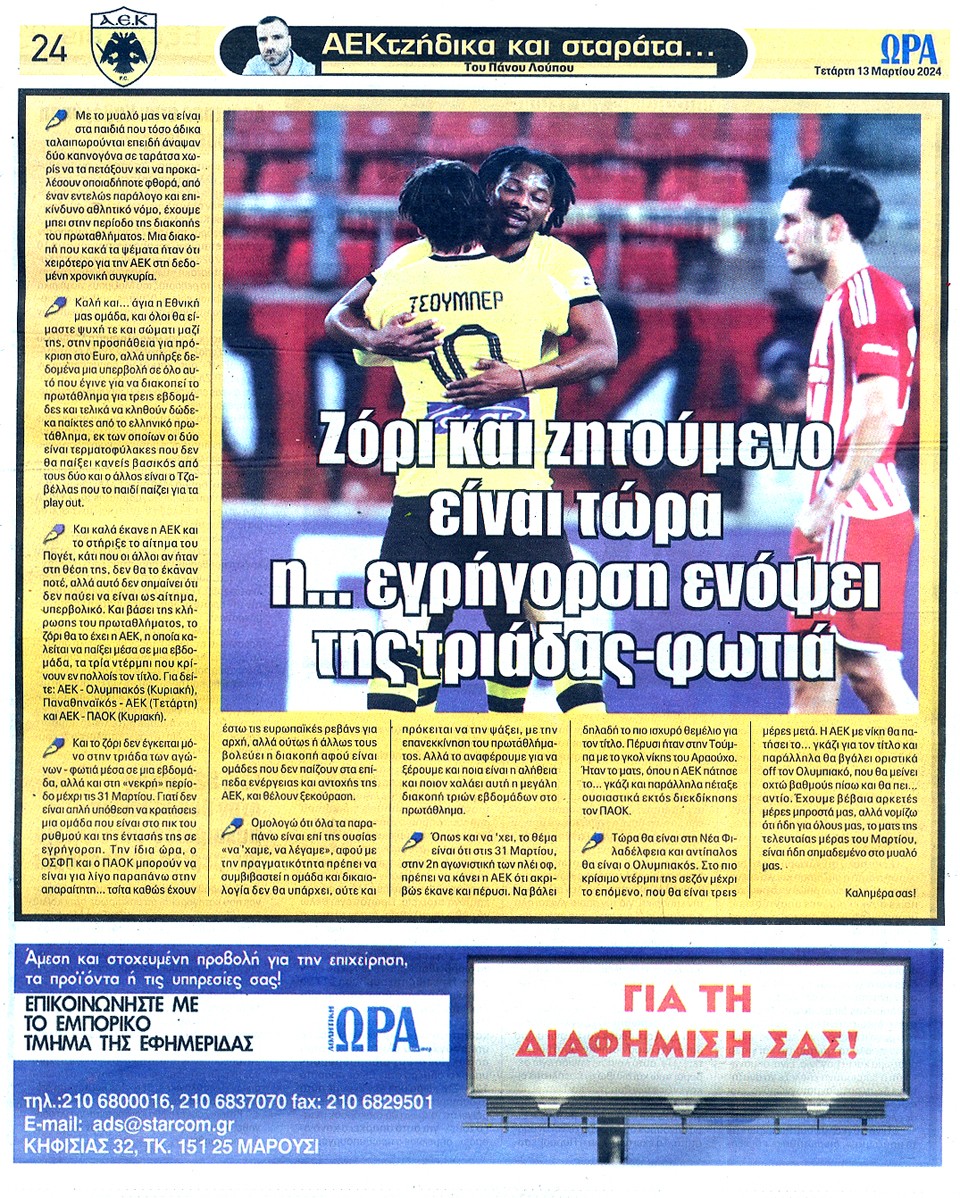ΑΘΛΗΤΙΚΗ ΩΡΑ ΤΩΝ ΣΠΟΡ - 13 Μαρτίου 2024