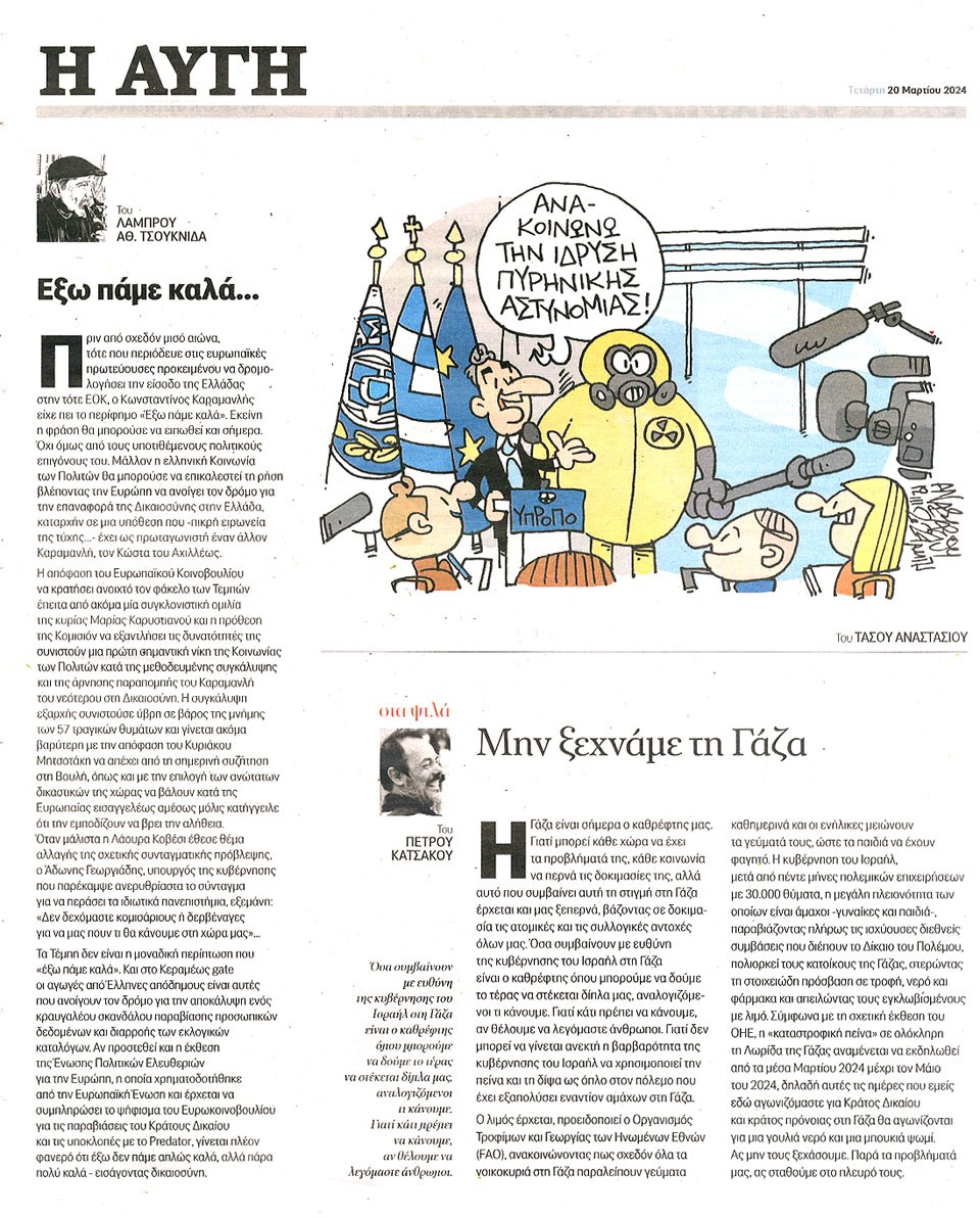 Η ΑΥΓΗ - 20 Μαρτίου 2024