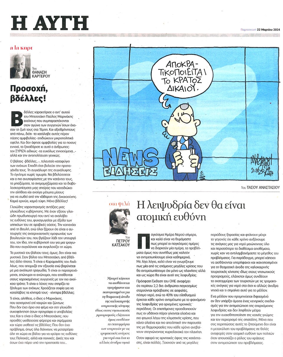 Η ΑΥΓΗ - 22 Μαρτίου 2024