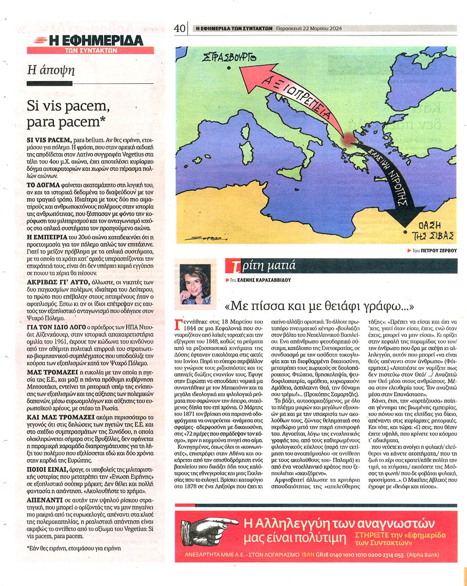 Η ΕΦΗΜΕΡΙΔΑ ΤΩΝ ΣΥΝΤΑΚΤΩΝ - 22 Μαρτίου 2024