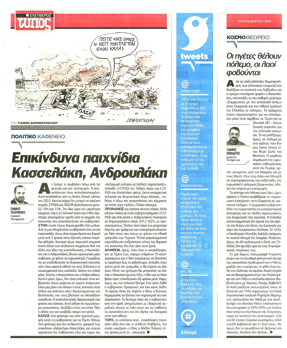 ΕΛΕΥΘΕΡΟΣ ΤΥΠΟΣ - 26 Μαρτίου 2024