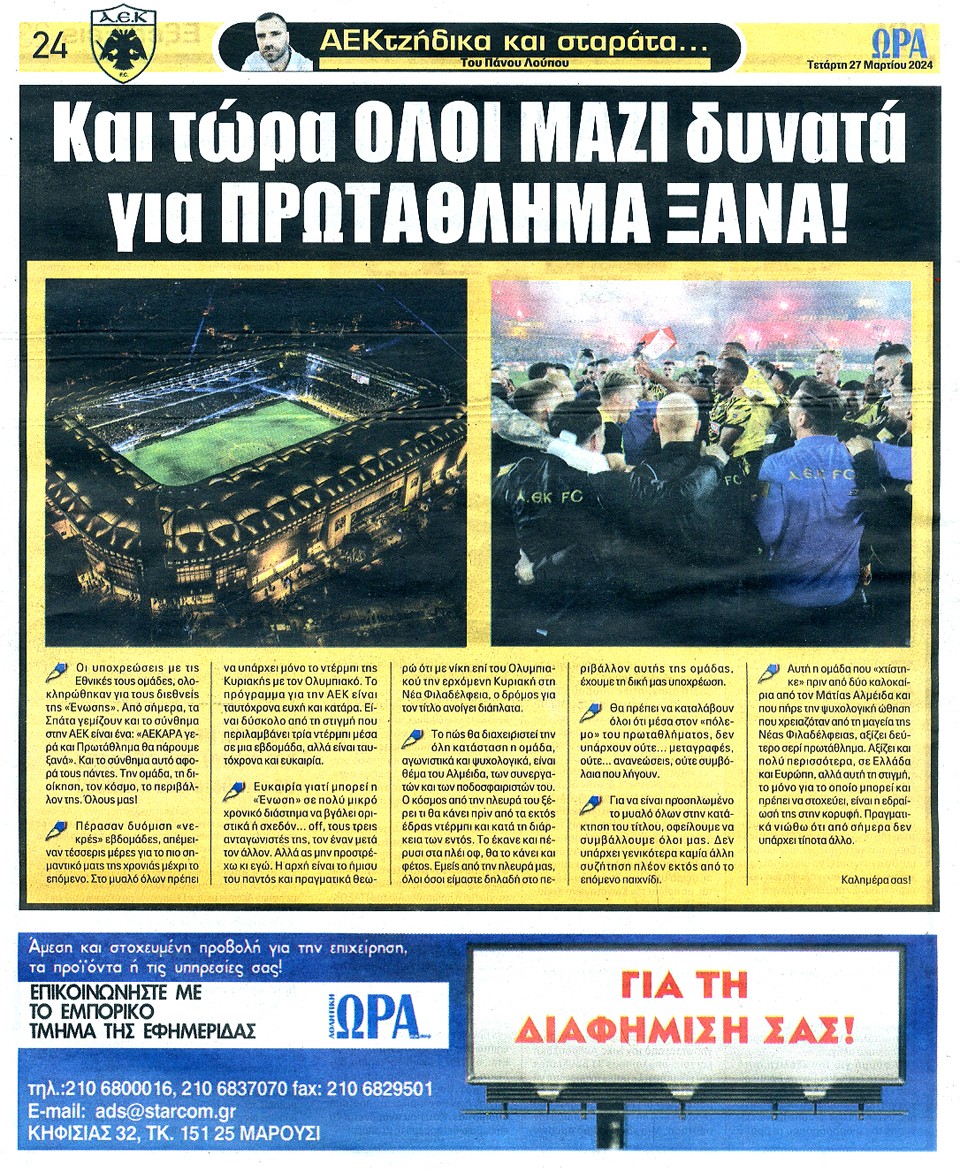 ΑΘΛΗΤΙΚΗ ΩΡΑ ΤΩΝ ΣΠΟΡ - 27 Μαρτίου 2024
