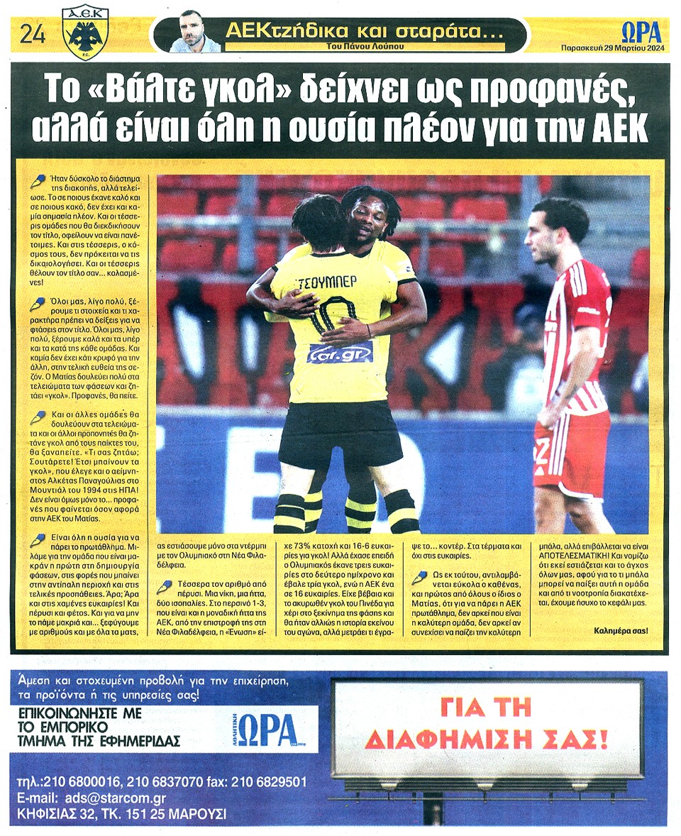 ΑΘΛΗΤΙΚΗ ΩΡΑ ΤΩΝ ΣΠΟΡ - 29 Μαρτίου 2024